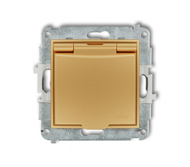ICON Gniazdo pojedyncze bryzgoszczelne z uziemieniem 2P+Z (klapka złota, przesłony torów prądowych) złoty Karlik 29IGPB-1zp