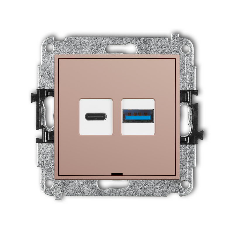 Ładowarka USB podwójna USB C + USB A, 30W max., bez pola opisowego, łososiowy Karlik Mini