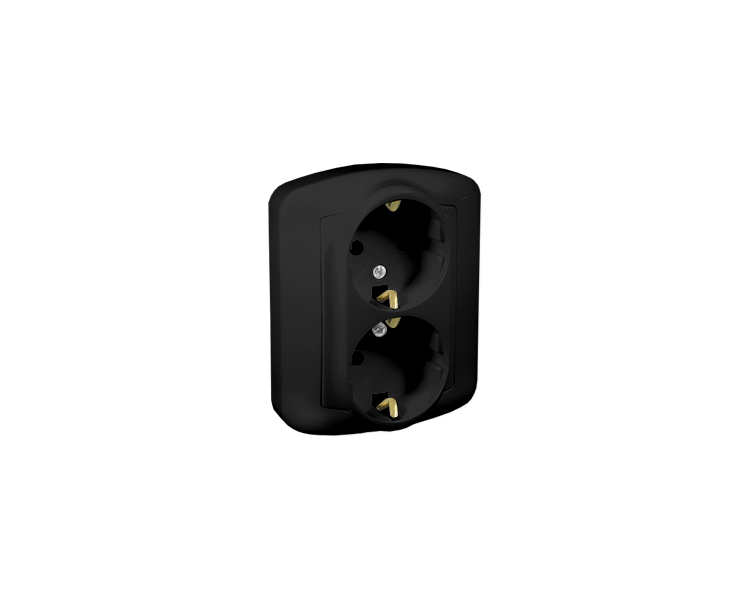 Gniazdo wtyczkowe podwójne z uziemieniem typu Schuko, czarny mat, 16A