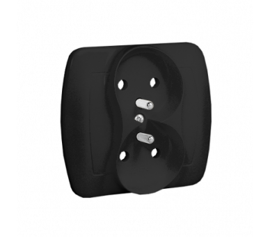 Gniazdo wtyczkowe podwójne z uziemieniem z przesłonami, czarny mat, 16A
