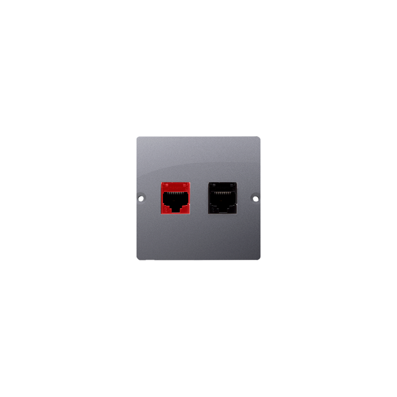 Gniazdo komputerowe RJ45, kategoria 6, podwójne z przesłoną przeciwkurzową (moduł). Montaż na łapki lub wkręty, grafit matowy
