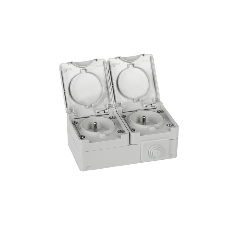 Gniazdo zasilające natynkowe podwójne z ochroną styków TEKNO IP65 szare