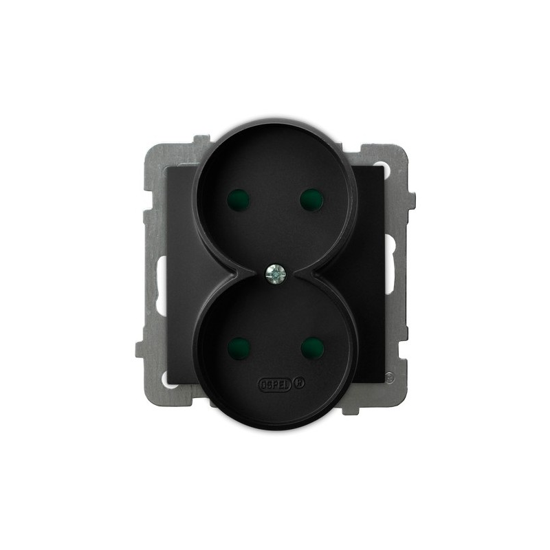 Gniazdo podwójne, bez uziemienia, z przesłonami torów prądowych, moduł bez ramki Czarny matowy Ospel As