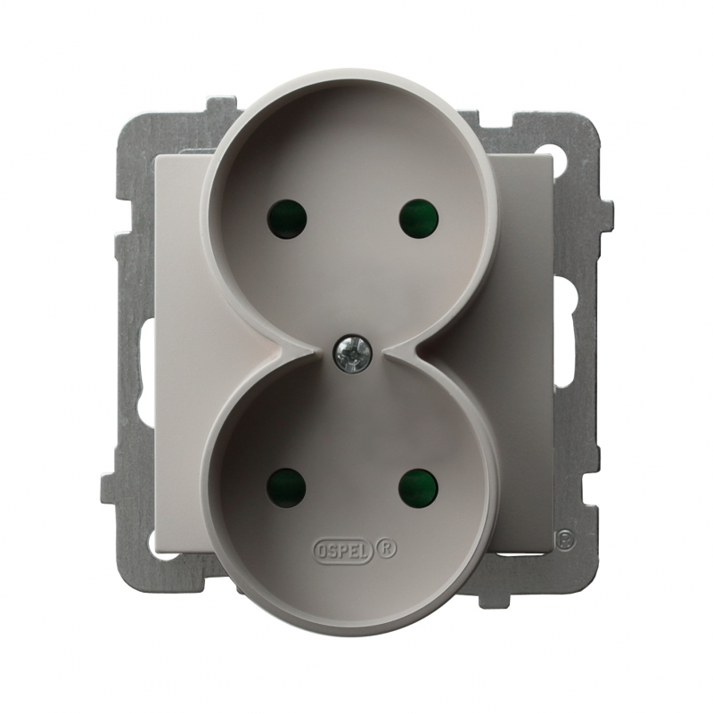 Gniazdo podwójne, bez uziemienia, z przesłonami torów prądowych, moduł bez ramki Kaszmir Ospel As