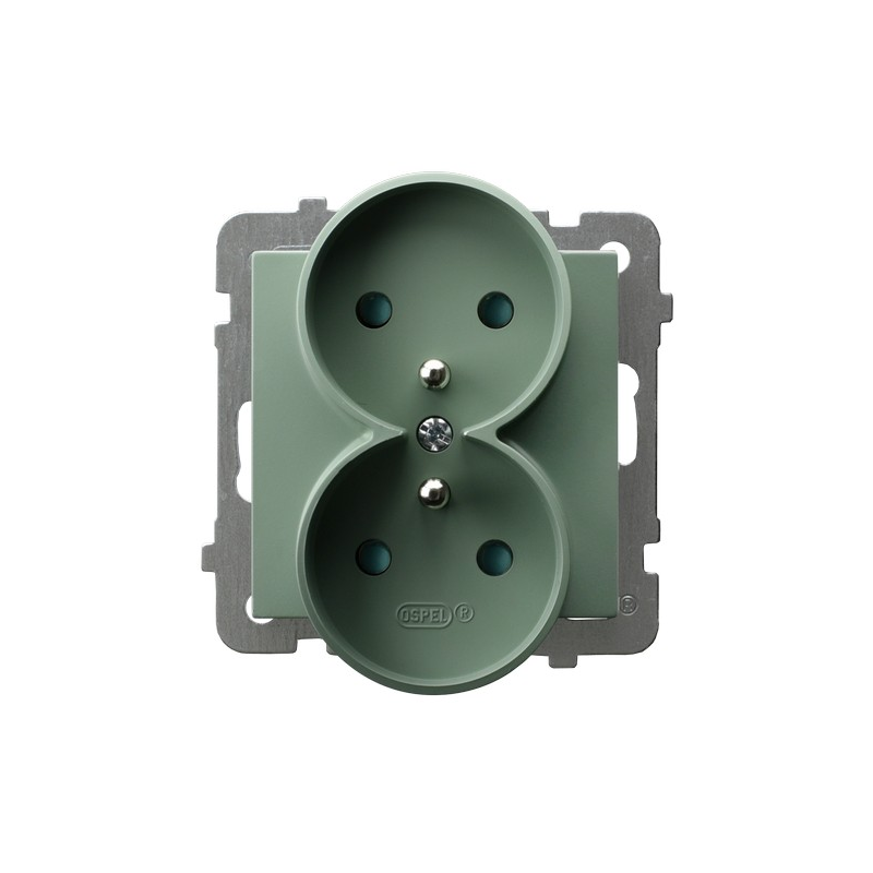 Gniazdo podwójne z uziemieniem z przesłonami torów prądowych, moduł bez ramki Zielony mat Ospel As