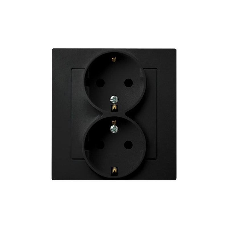 Gniazdo podwójne z uziemieniem schuko kompletne z ramką Czarny matowy Ospel As