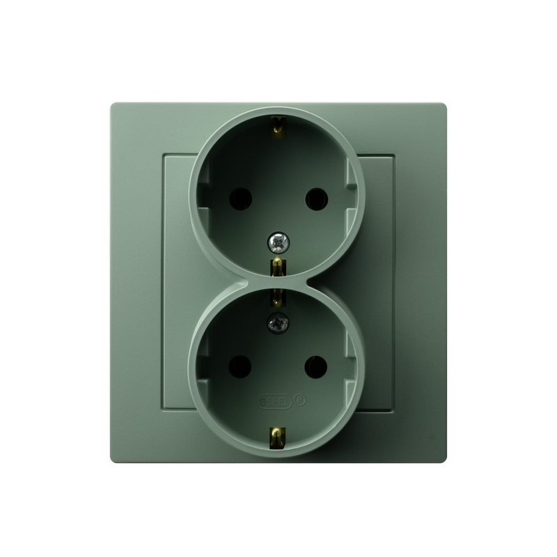 Gniazdo podwójne z uziemieniem schuko kompletne z ramką Zielony mat Ospel As