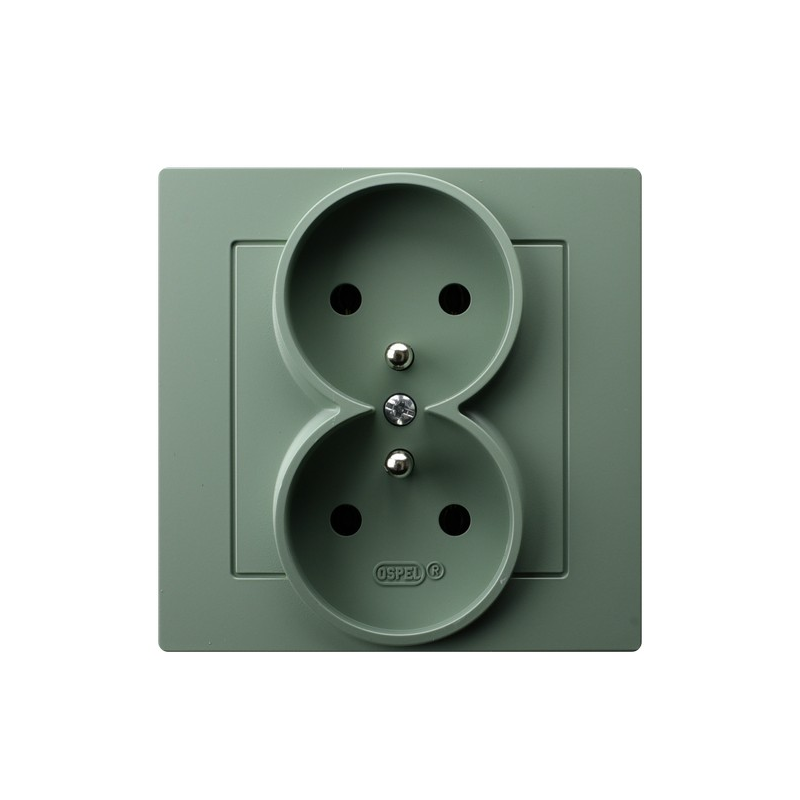 Gniazdo podwójne z uziemieniem kompletne z ramką Zielony mat Ospel As