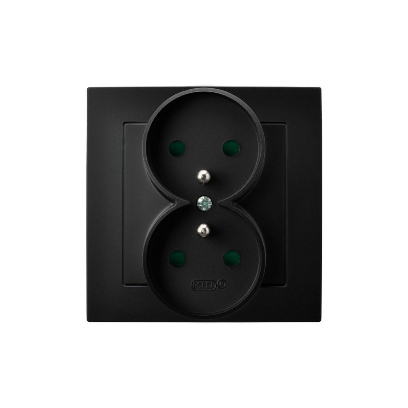 Gniazdo podwójne z uziemieniem z przesłonami torów prądowych, kompletne z ramką Czarny matowy Ospel As