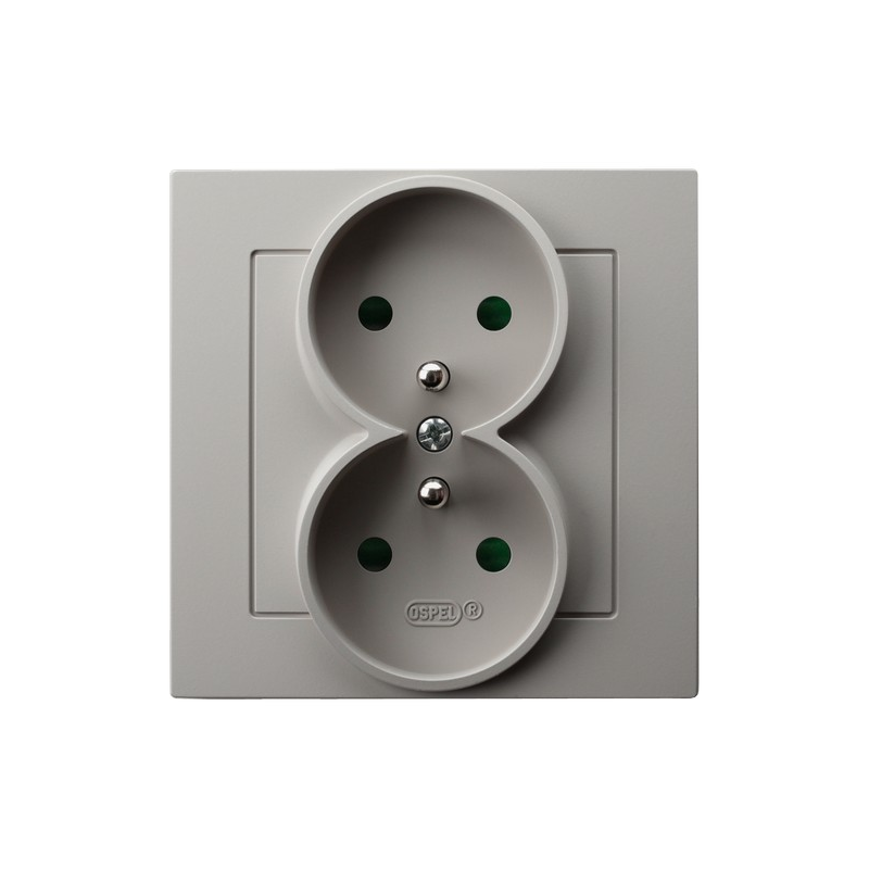Gniazdo podwójne z uziemieniem z przesłonami torów prądowych, kompletne z ramką Kaszmir Ospel As