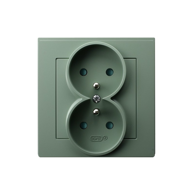 Gniazdo podwójne z uziemieniem z przesłonami torów prądowych, kompletne z ramką Zielony mat Ospel As