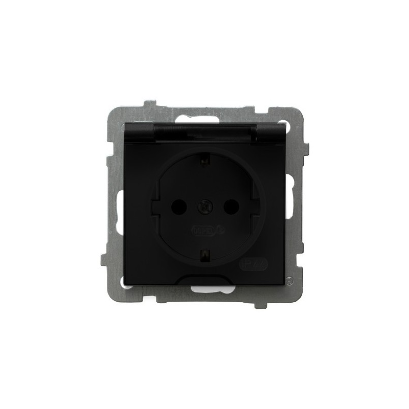 Gniazdo bryzgoszczelne z uziemieniem schuko IP-44 wieczko przezroczyste Czarny matowy Ospel As