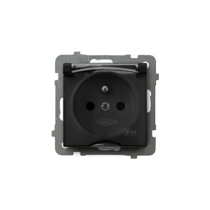 Gniazdo bryzgoszczelne z uziemieniem IP-44 wieczko przezroczyste Czarny matowy Ospel As