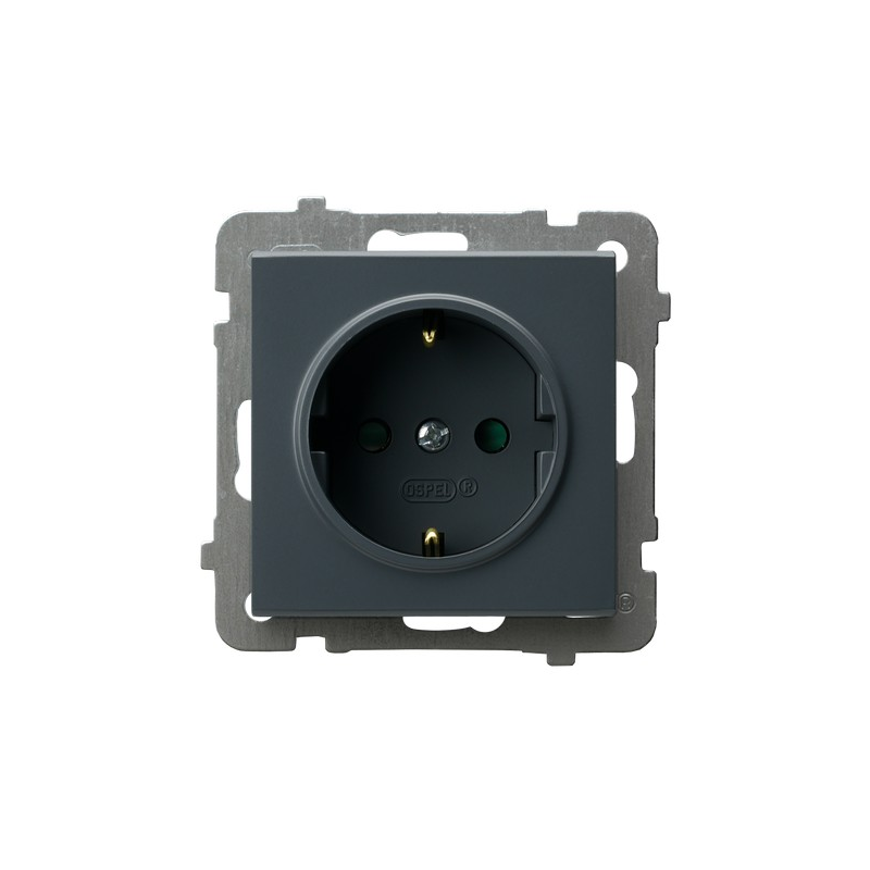 Gniazdo pojedyncze z uziemieniem schuko z przesłonami torów prądowych Szary grafit Ospel Sonata