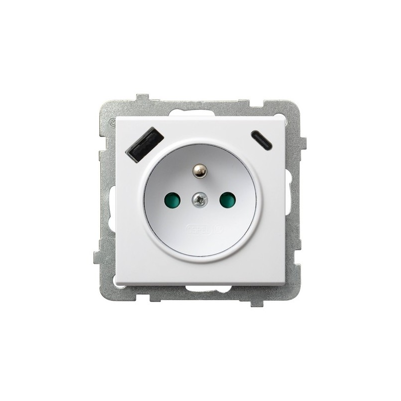Gniazdo pojedyncze z uziemieniem z przesłonami torów prądowych, z ładowarką USB A+C Biały Ospel Sonata