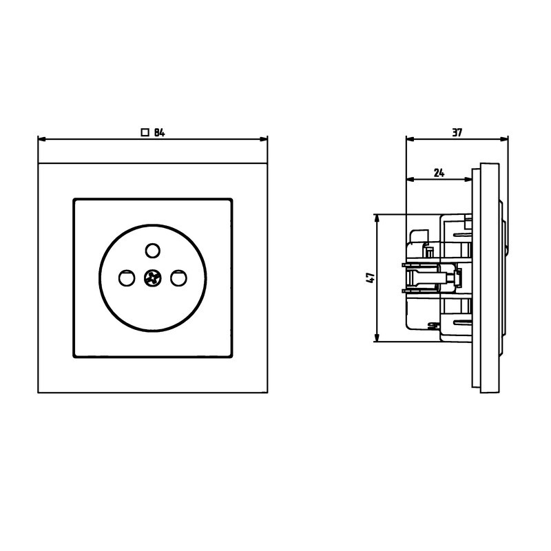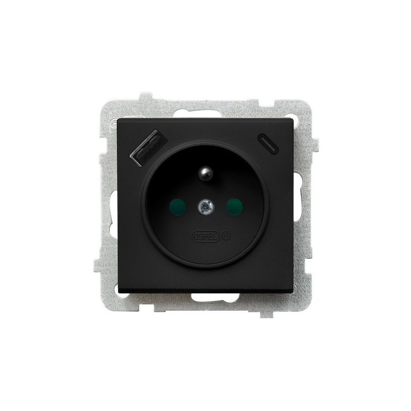Gniazdo pojedyncze z uziemieniem z przesłonami torów prądowych, z ładowarką USB A+C Czarny matowy Ospel Sonata