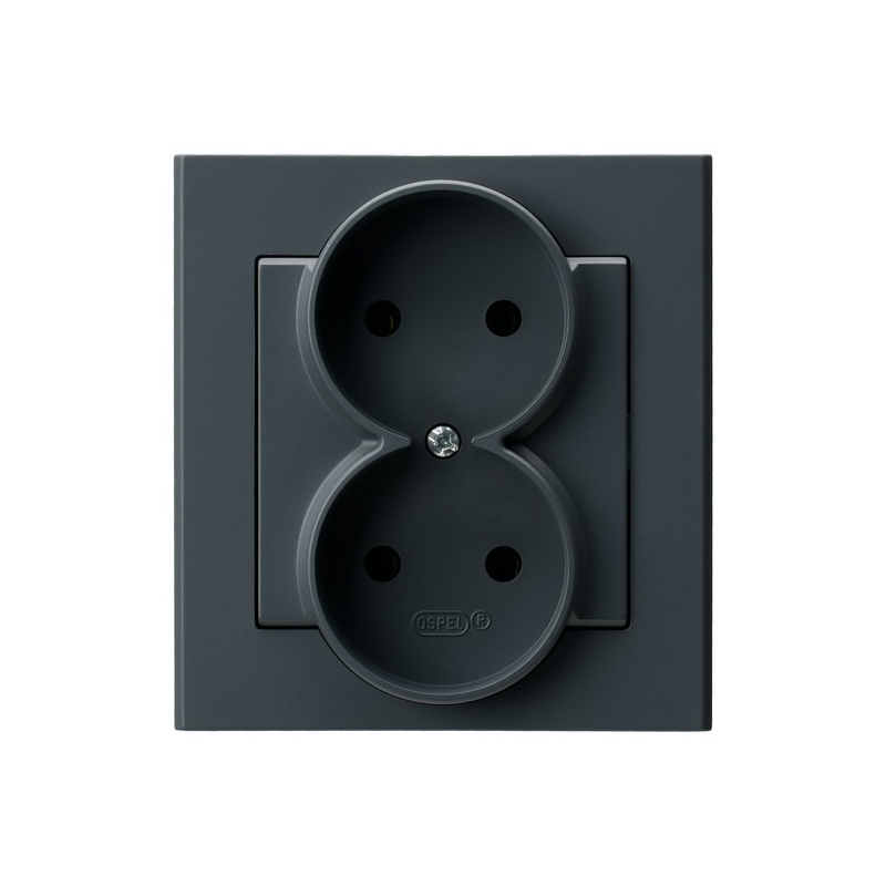 Gniazdo podwójne kompletne z ramką Szary grafit Ospel Sonata