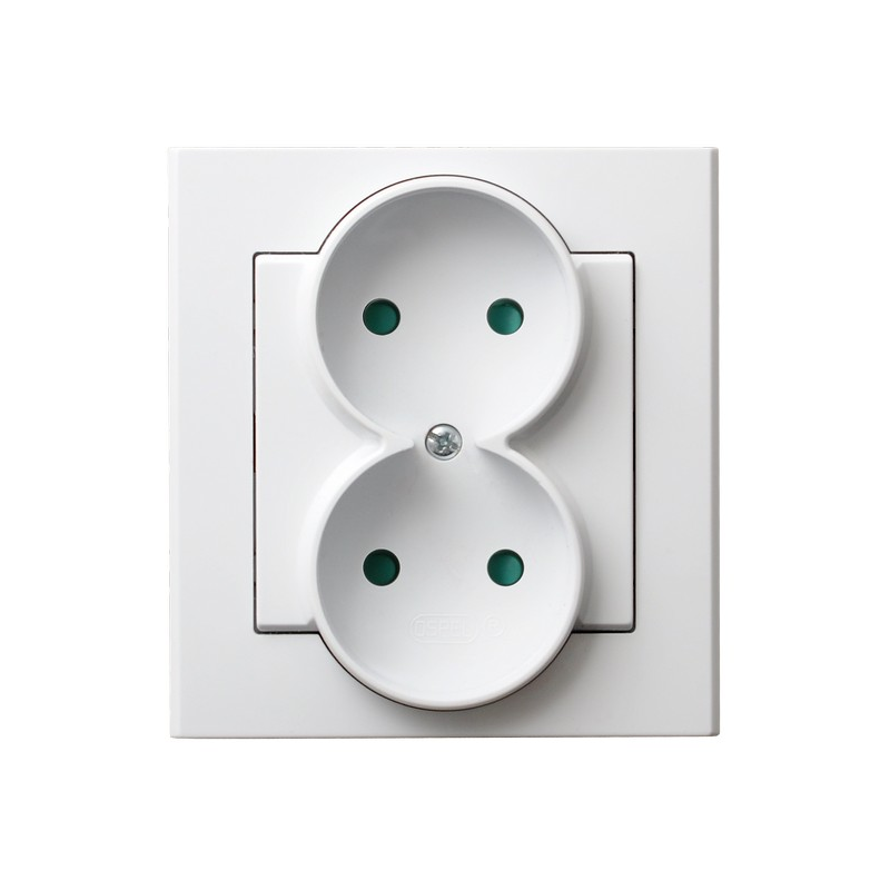 Gniazdo podwójne z przesłonami torów prądowych, kompletne z ramką Biały mat Ospel Sonata
