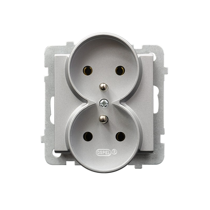 Gniazdo podwójne z uziemieniem moduł bez ramki (do ramek 4mm) Srebro mat Ospel Sonata