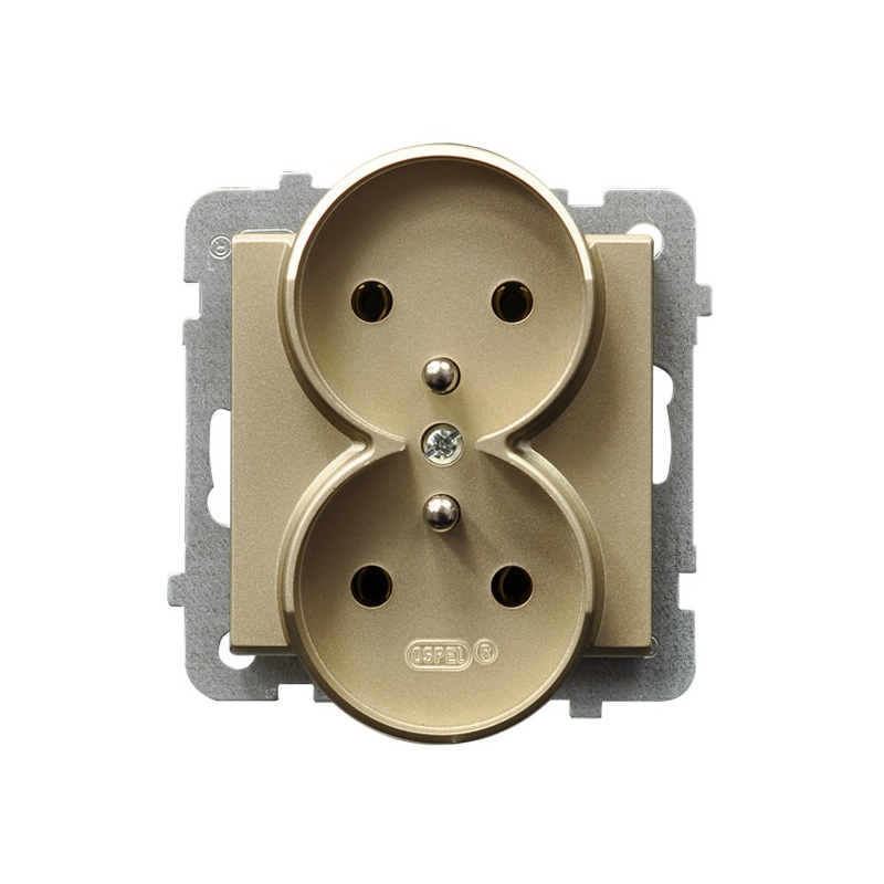 Gniazdo podwójne z uziemieniem moduł bez ramki (do ramek 4mm) Szampański złoty Ospel Sonata