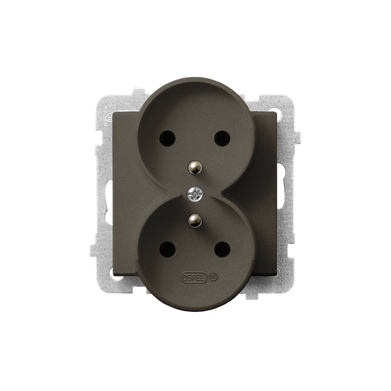 Gniazdo podwójne z uziemieniem moduł bez ramki (do ramek 4mm) Czekoladowy metalik Ospel Sonata
