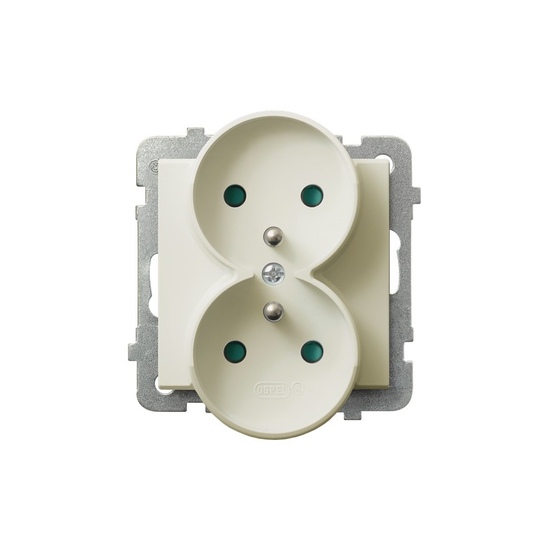 Gniazdo podwójne z uziemieniem z przesłonami torów prądowych, moduł bez ramki (do ramek 4mm) Ecru Ospel Sonata