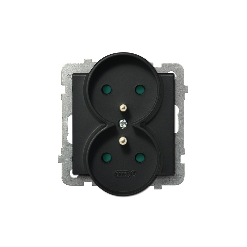 Gniazdo podwójne z uziemieniem z przesłonami torów prądowych, moduł bez ramki (do ramek 4mm) Czarny matowy Ospel Sonata