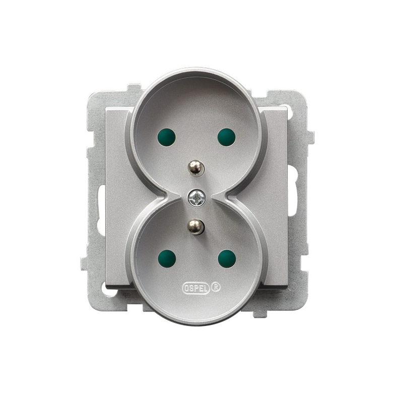 Gniazdo podwójne z uziemieniem z przesłonami torów prądowych, moduł bez ramki (do ramek 4mm) Srebro mat Ospel Sonata