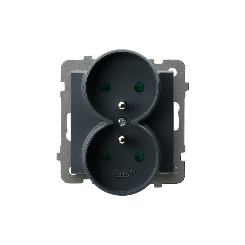 Gniazdo podwójne z uziemieniem z przesłonami torów prądowych, moduł bez ramki Szary grafit Ospel Sonata
