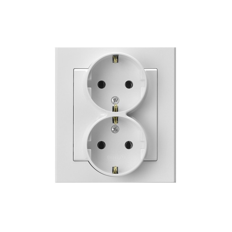 Gniazdo podwójne z uziemieniem schuko kompletne z ramką Biały mat Ospel Sonata