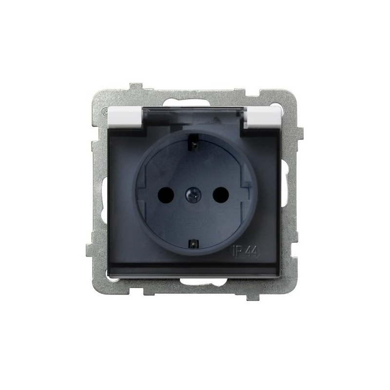 Gniazdo bryzgoszczelne z uziemieniem schuko IP-44 wieczko przezroczyste Biały mat Ospel Sonata