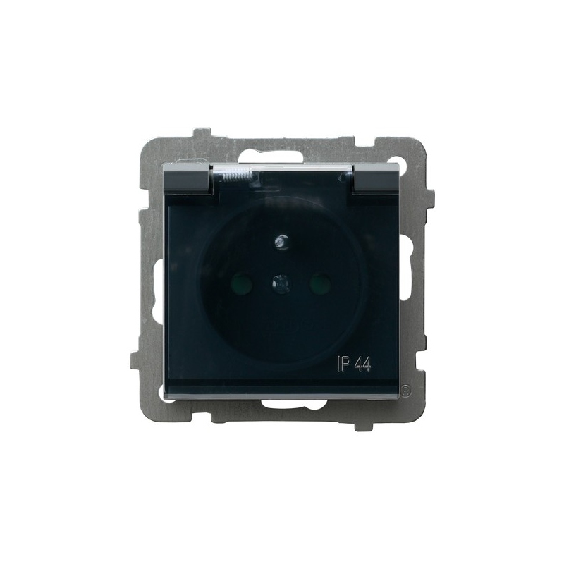 Gniazdo bryzgoszczelne z uziemieniem IP-44 z przesłonami torów prądowych wieczko przezroczyste Szary grafit Ospel Sonata