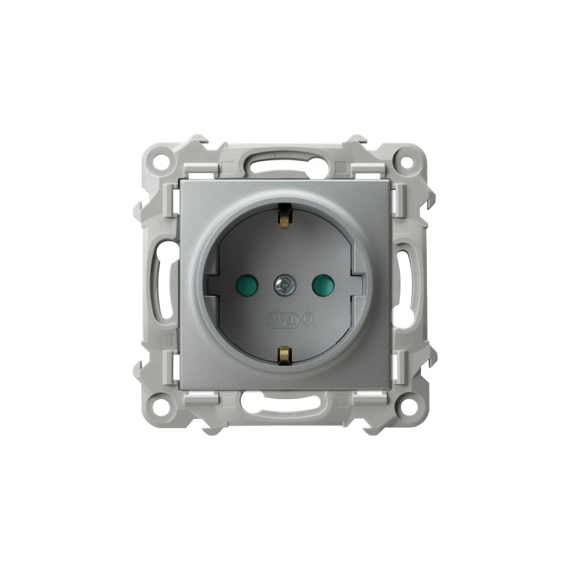 Gniazdo pojedyncze z uziemieniem schuko z przesłonami torów prądowych Srebro Ospel Szafir