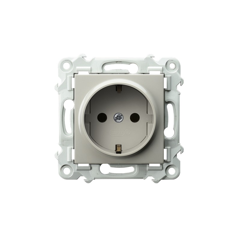 Gniazdo pojedyncze z uziemieniem schuko z przesłonami torów prądowych Kaszmirowy beż Ospel Szafir