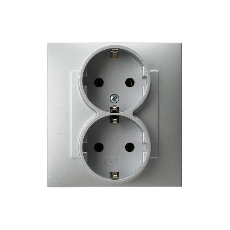Gniazdo podwójne z uziemieniem schuko Srebro Ospel Szafir