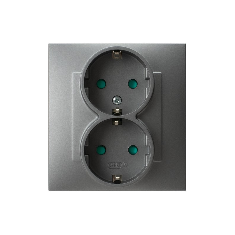 Gniazdo podwójne z uziemieniem schuko z przesłonami torów prądowych, kompletne z ramką Szary mat Ospel Szafir